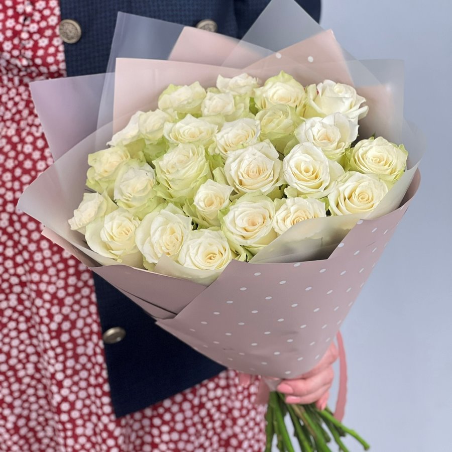 Букет из 25 белых кенийских роз (A1, AOne) 40 см дешево