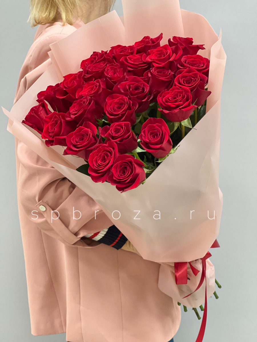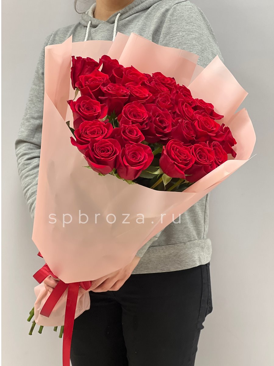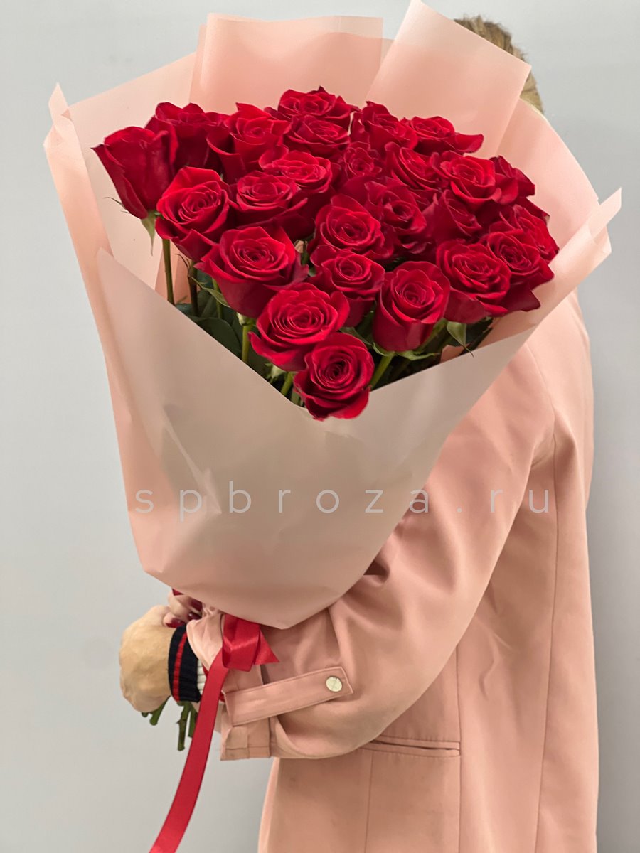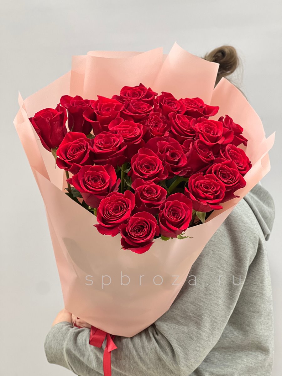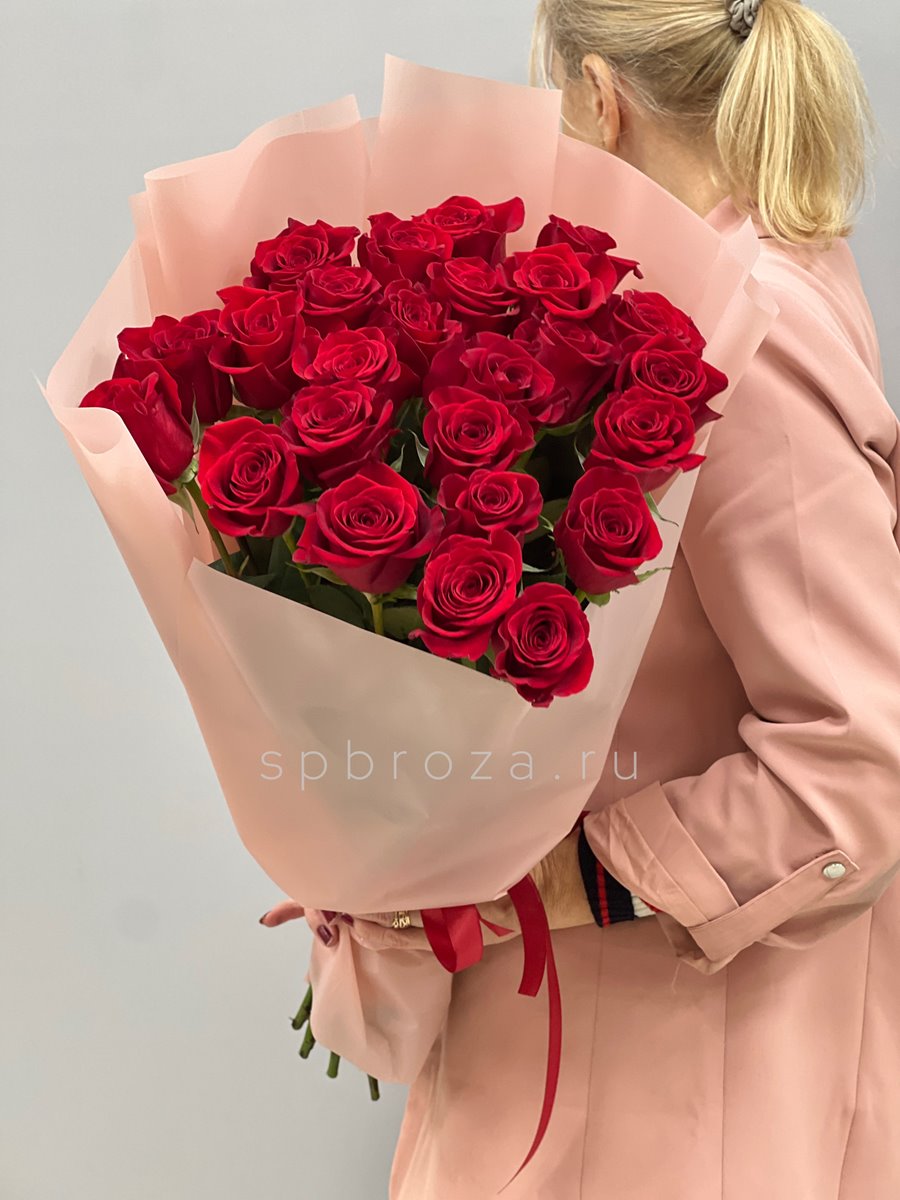 25 алых роз Freedom Эквадор в дизайнерской упаковке