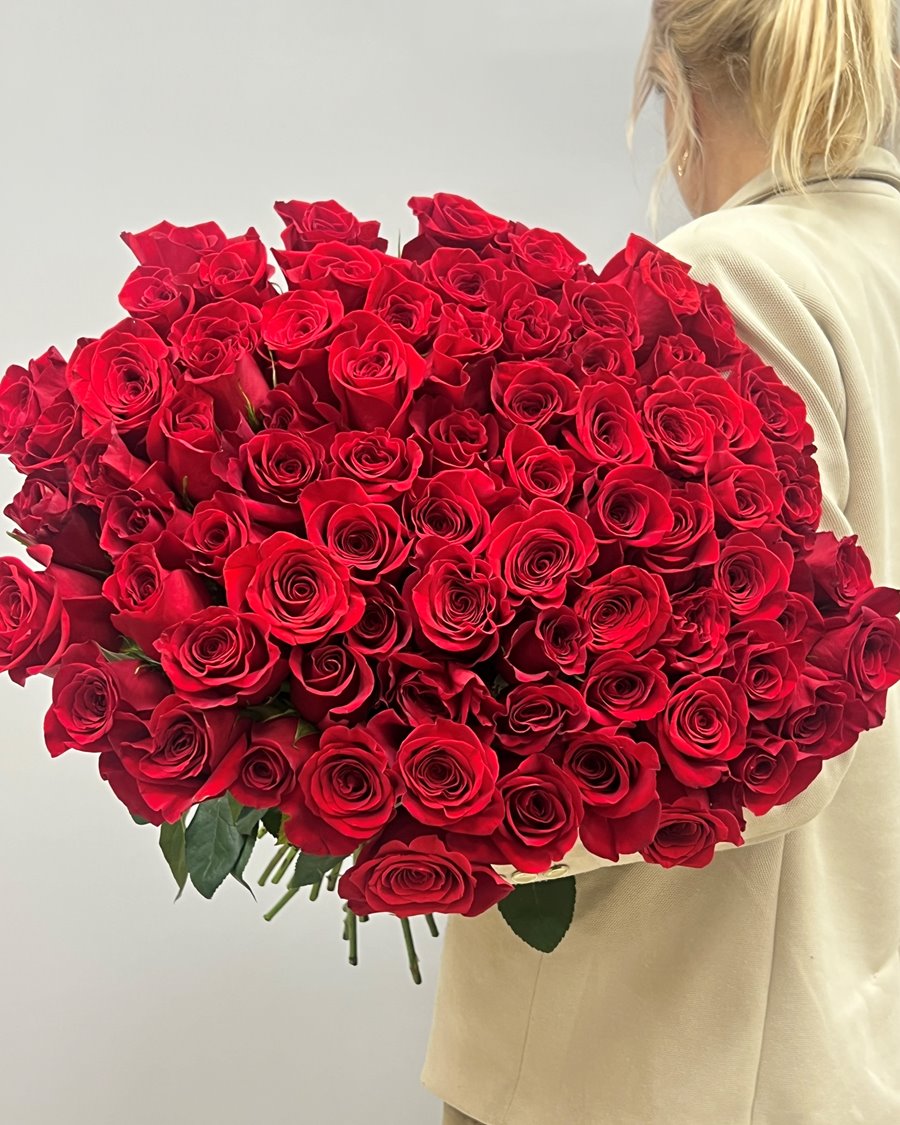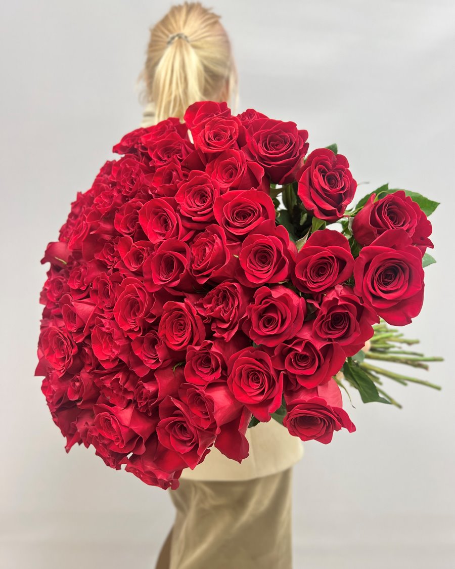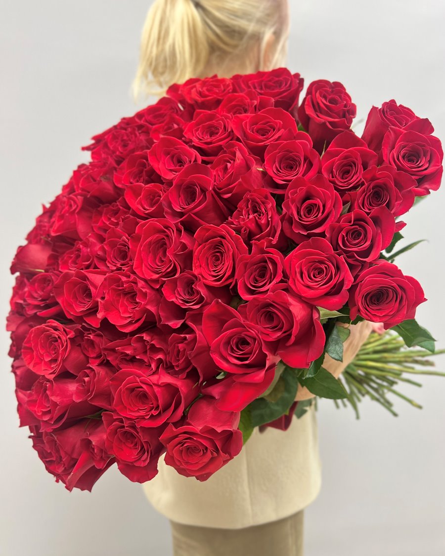 В цветочной символике 75 роз означают "любовь до конца жизни". Это не просто большое количество - это глубокий смысл, понятный без слов.