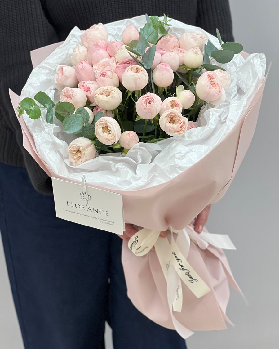 Закажите пионовидные розы Мэнсфилд Парк с эвкалиптом от СПброза — и подарите моменты чистой эстетики и утонченности!