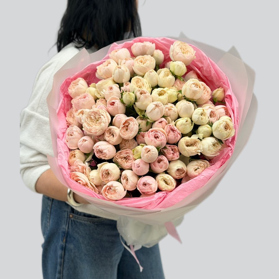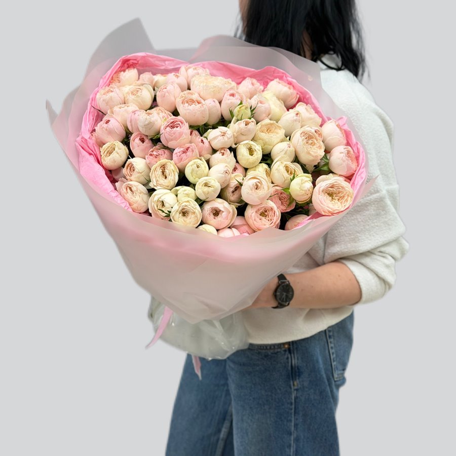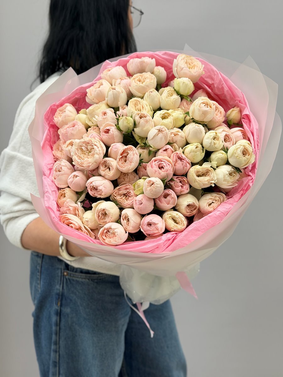 Заказать букет 21 пионовидную нежно розовую розу Мэнсфилд Парк (Mansfield Park )