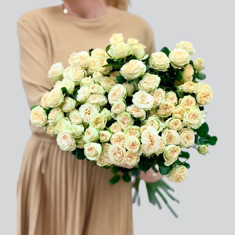 25 роз пионовидных кустовых Саммер Роуз кремовая