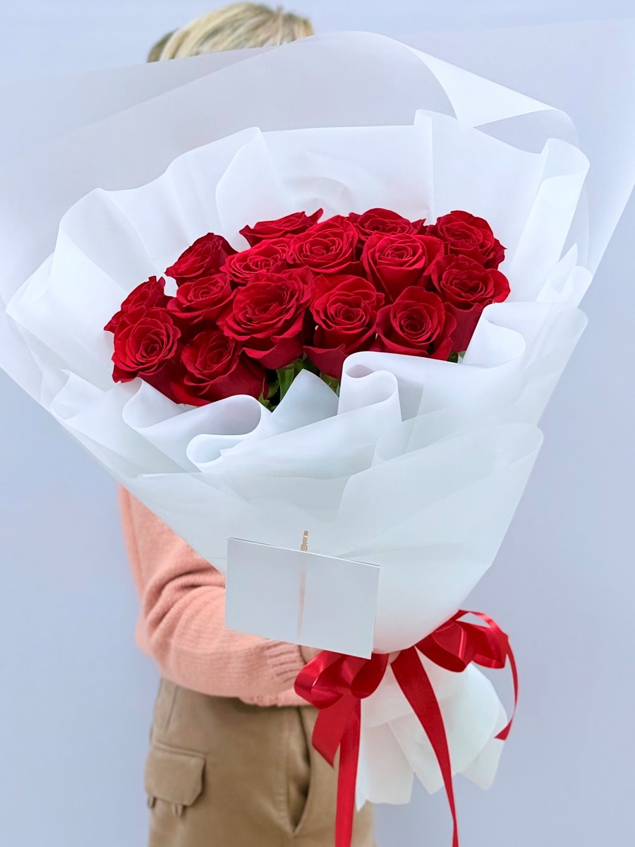 ❤️ Красный – символ любви 🌿 Эквадорские розы 🎁 Стильная упаковка 🚚 Доставка 2-3 часаЗа 15 красных роз Фридом в упаковке