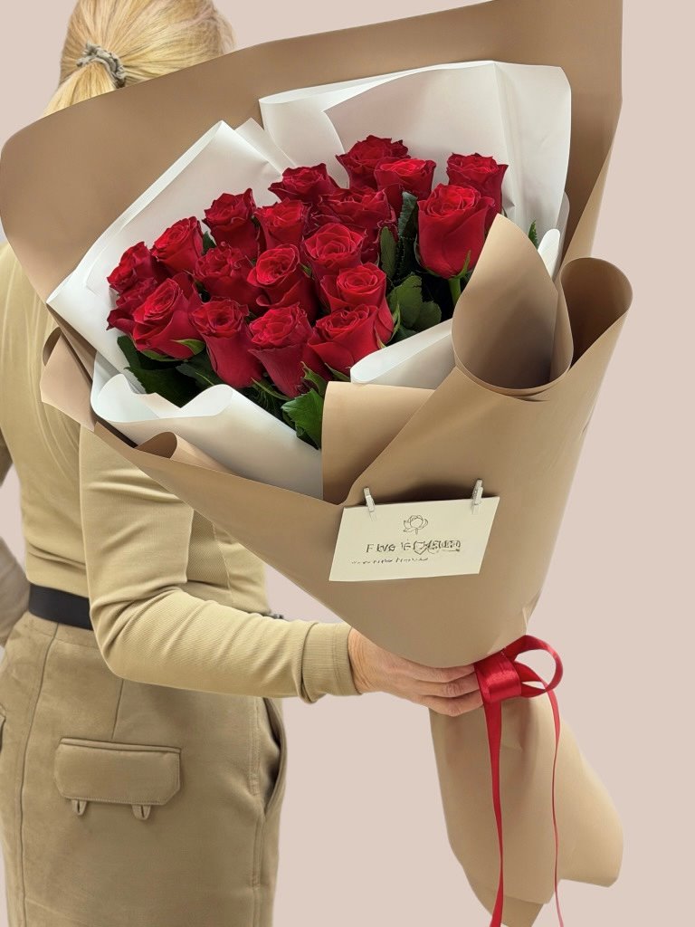 Роскошный букет из 19 алых роз сорта Родос длиной 60 см – это не просто цветы, это настоящее признание в самых сильных чувствах. Число 19 символизирует вечную любовь, а насыщенный красный цвет роз Родос говорит о страсти, преданности и глубоком уважении.