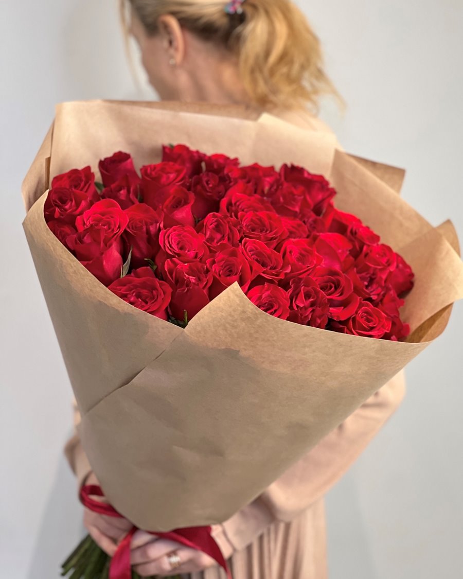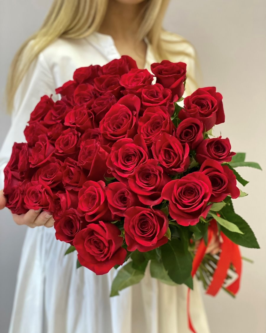 📸 Объем и роскошь: 41 красная роза Фридом