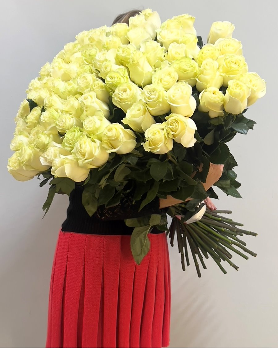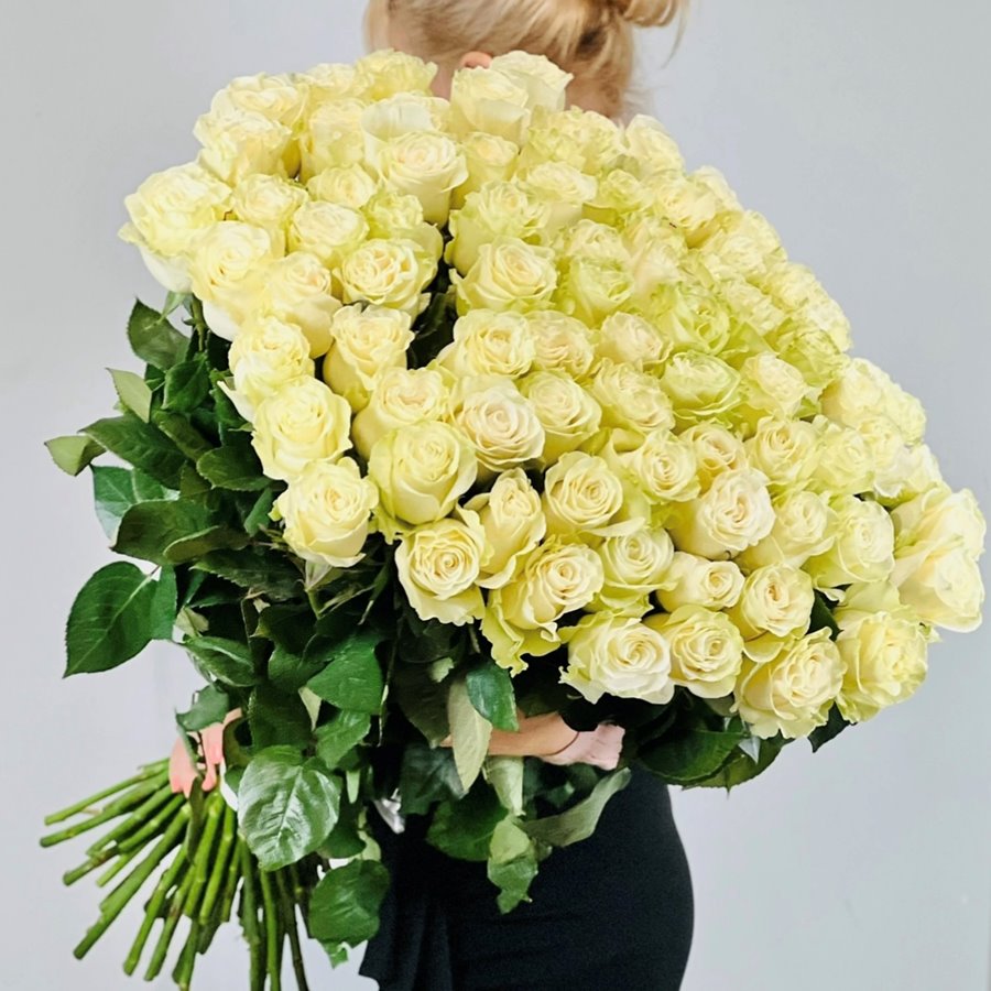 75 белых роз «Мондиаль» 80 см (Эквадор) — купить в Санкт-Петербурге