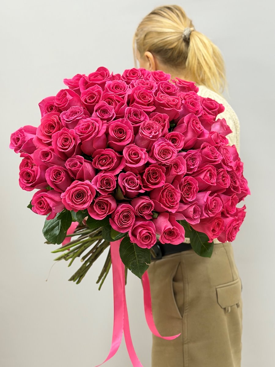 Купить 75 розовых роз 50 см Эквадор по низкой цене в СПб