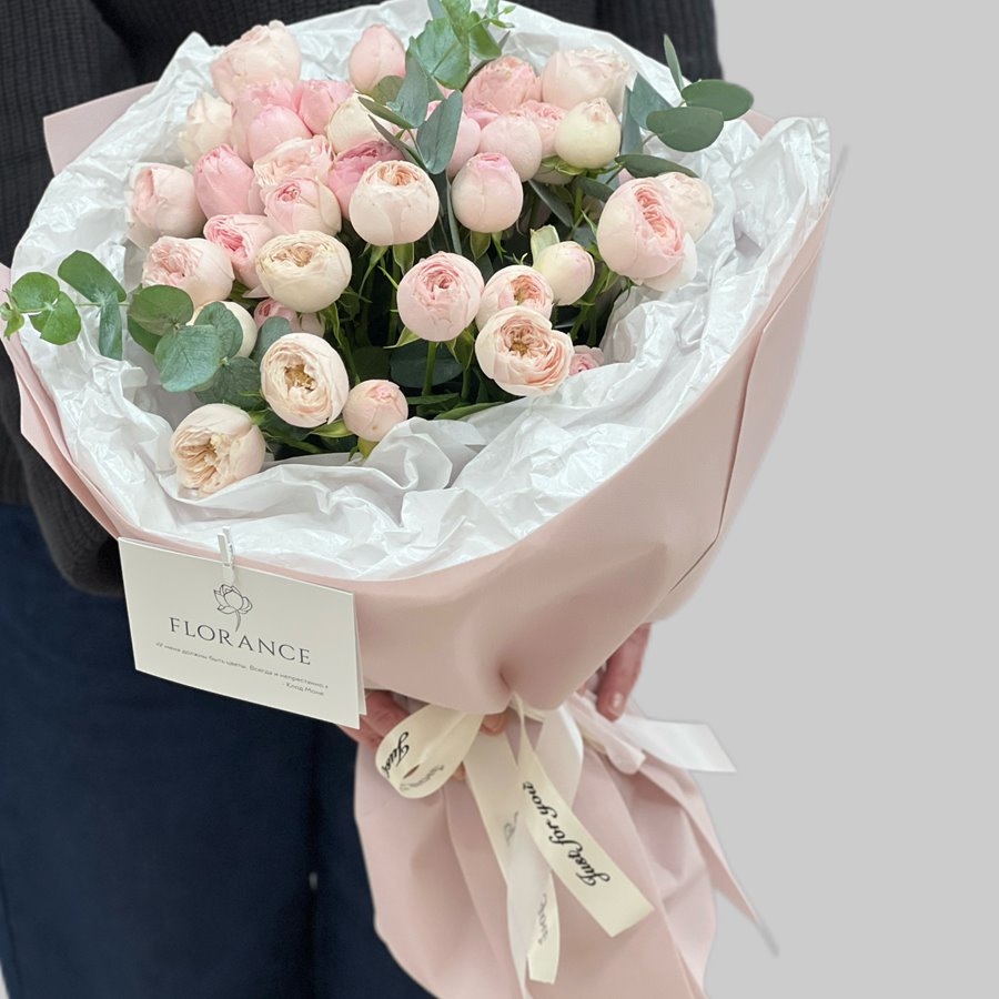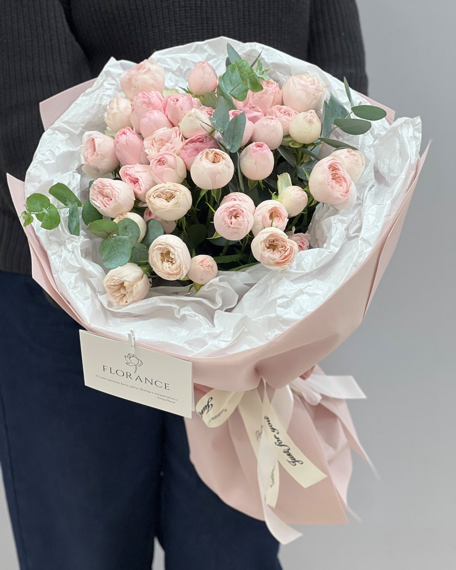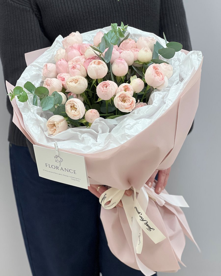 Закажите пионовидные розы Мэнсфилд Парк с эвкалиптом от СПброза — и подарите моменты чистой эстетики и утонченности!