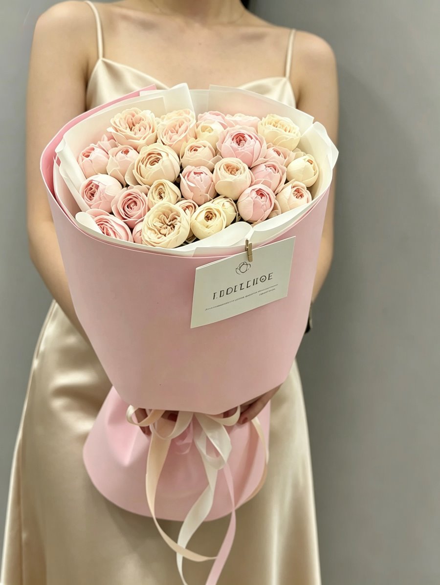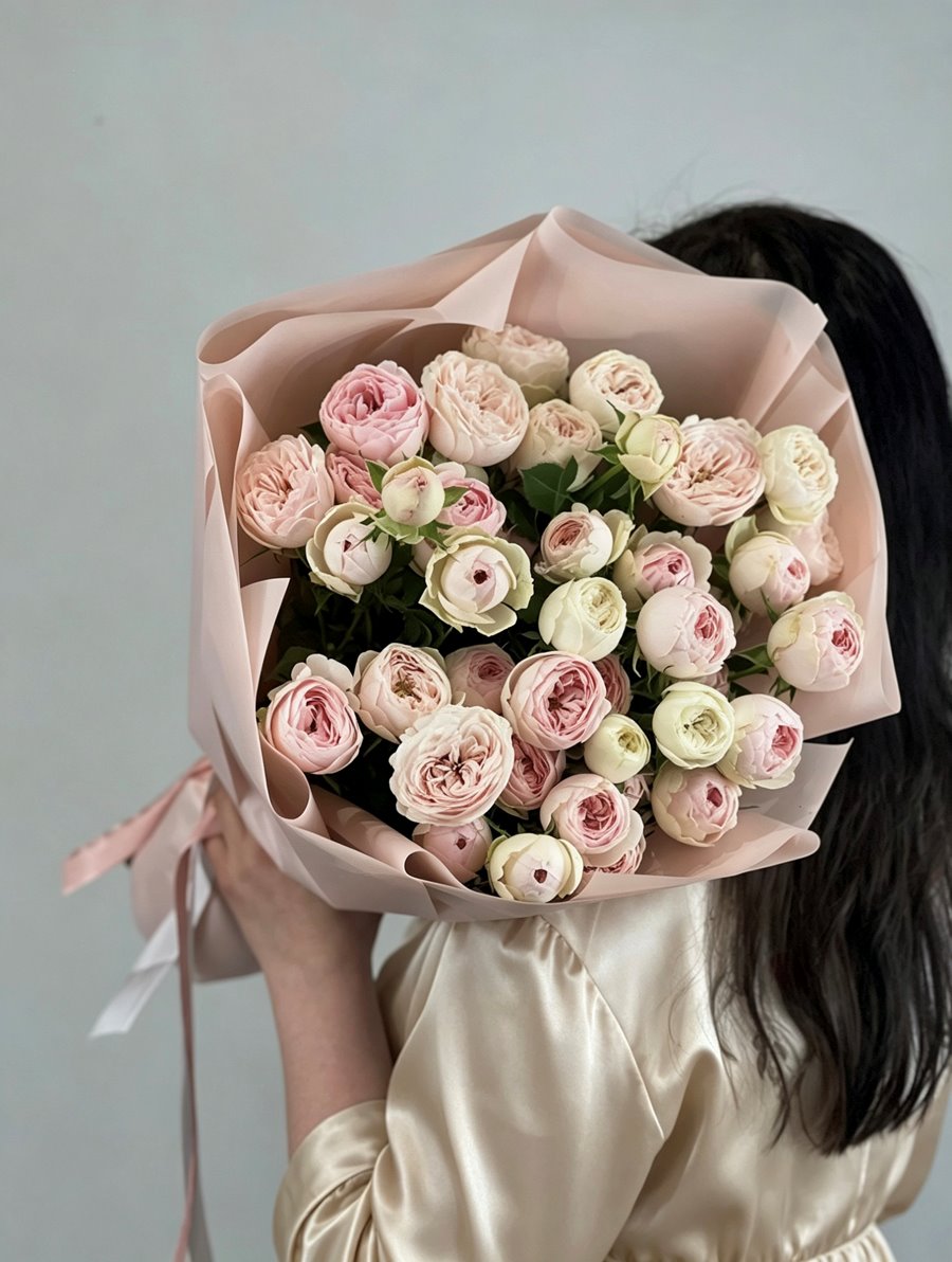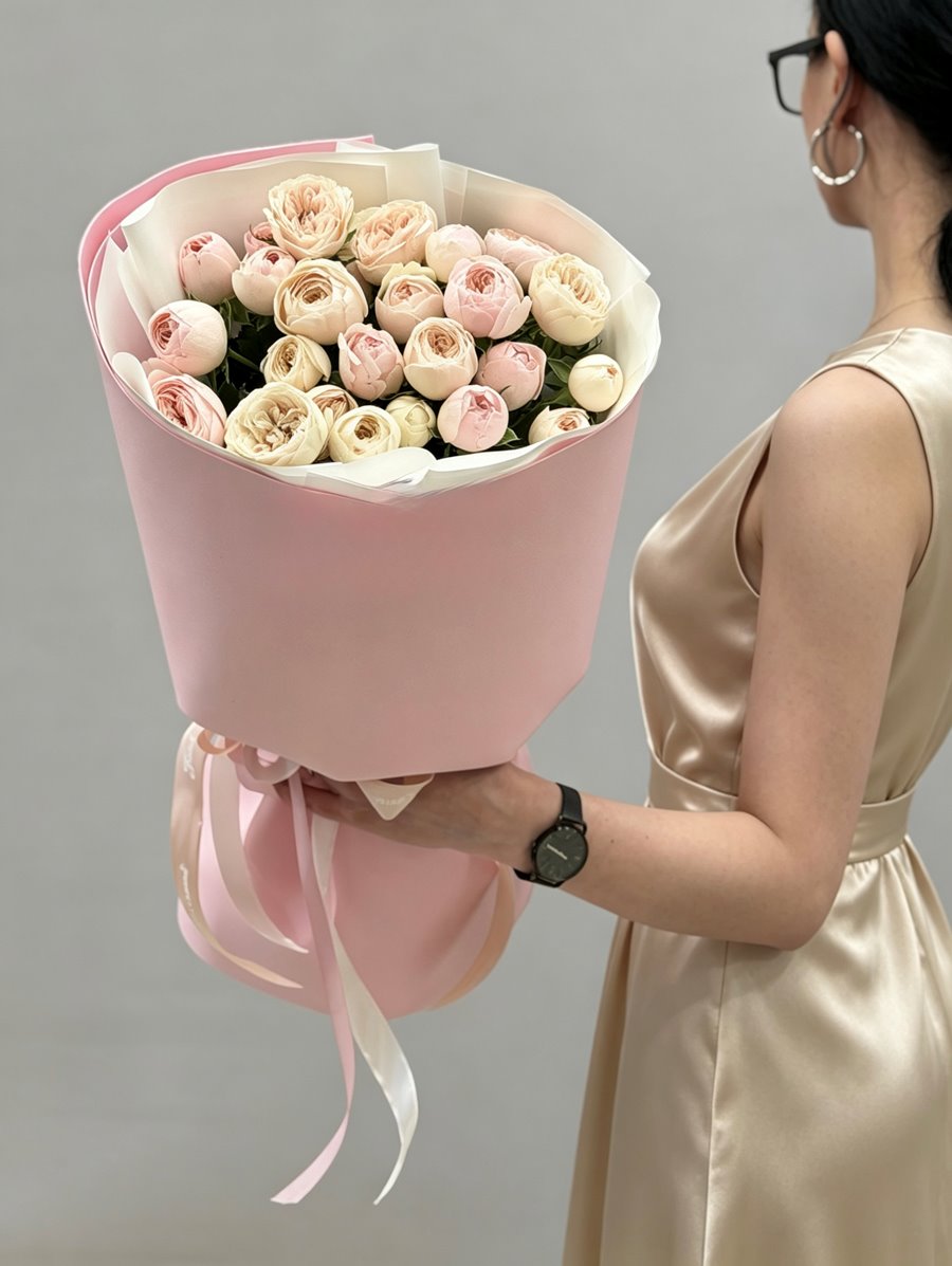 🌹 Пышные махровые бутоны 🎨 Нежный розово-персиковый ✨ Свежие цветы с гарантией 7 дней 🚚 Доставка 2-3 часа по СПбЗа 11 пионовидных кустовых роз в дизайнерской упаковке
