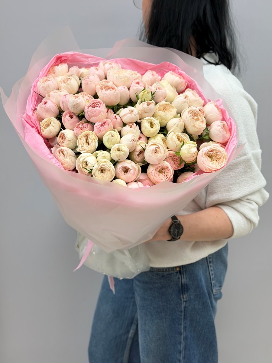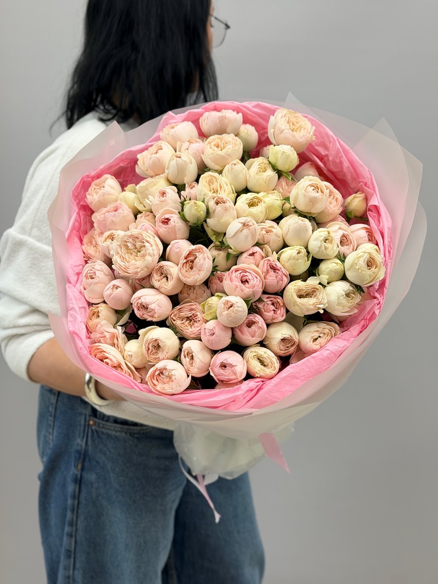 Заказать букет 21 пионовидную нежно розовую розу Мэнсфилд Парк (Mansfield Park )