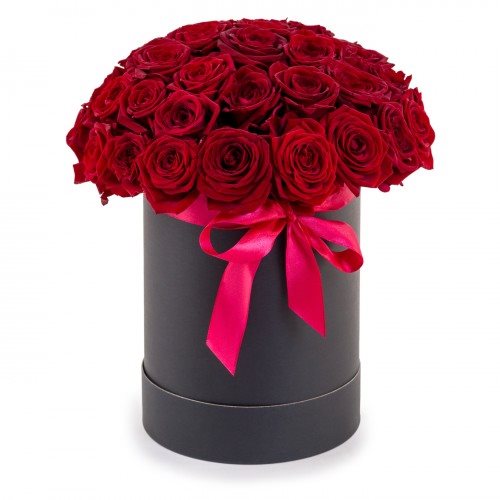 25 красных роз в шляпной коробке 5700 рублей роза Эквадор сорт Фридом